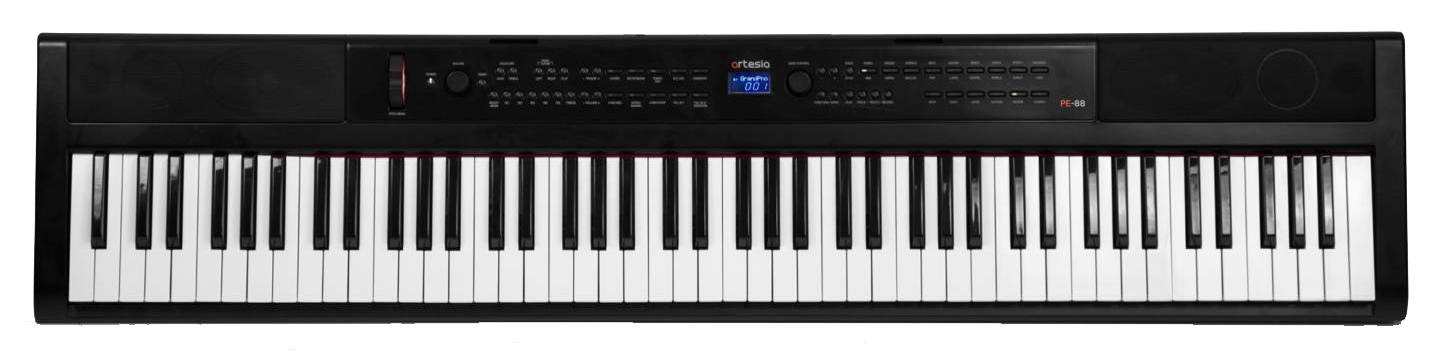 El precio original era: 335,00€.284,75€El precio actual es: 284,75€. IVA Inc.PIANO DE ESCENARIO ARTESIA PE-88 NEGRO