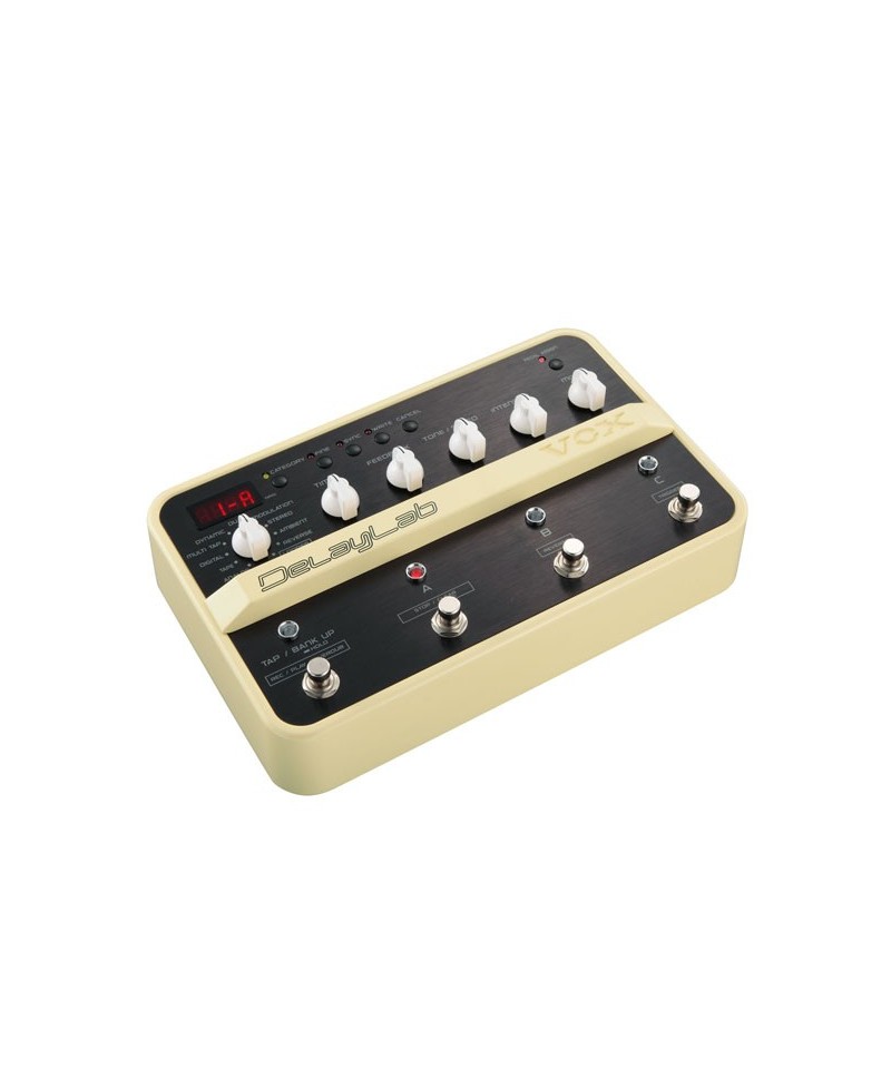 Pedal de delay VOX Delaylab. Los Efectos de Retardo son una necesidad para satisfacer la creatividad de cualquier guitarrista. Su larga historia va desde la era analógica a la digital. Muchas unidades Delay clásicas han jugado un papel importante a lo largo de los años, contribuyendo a ese punteo memorable, generando inigualables espacios sonoros, y produciendo interpretaciones psicodélicas, tanto en escena como en el estudio. Estas demandadas unidades, así como los Delays que se han convertido en estándar de la siguiente generación, están todos incluidos en VOX DelayLab.